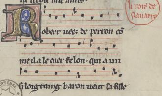 li rois de nauarre Robert ueez de perron co(n) me il a le cuer felon. qui a un si loigtaing baron ueut sa fille |