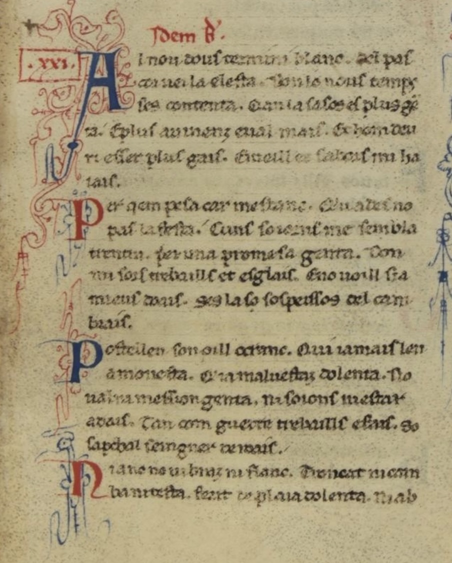 Idem B. Al nou dous termini blanc. del pas- Pofrellen son oill ocranc. Qui iamais len- Nianc no uibraz ni fianc. Troncat nicam