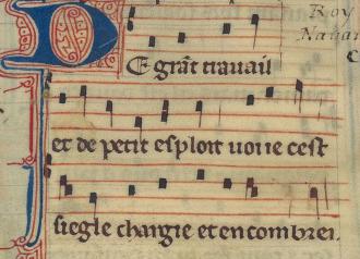 qui tant sunt mais plain de ma leurtey que nu(n)s ne panse a faire ce quil doit ainz auons si le de a[u]ble troussey qua lui seruir chascuns panse (et) essaie. (et) deu q(ui) ot por nos la cruel plaie. auo(n)s mais tuit arriere de boutey mout est hardiz qui por mort Dex qui tot puet (et) tot set et ne sesmaie tot uoit. nos a ueroit (un) entredous getey. se la dame plaine de g(ra)nt bonte qui est lez lui por nos ne li pri oit si tres douz moz plaisant et sauore les granz corroz dou g(ra)nt seignour rapaie. m(ou)t par est fox qui autre amor essaie qua cestui na barat ne fause  |